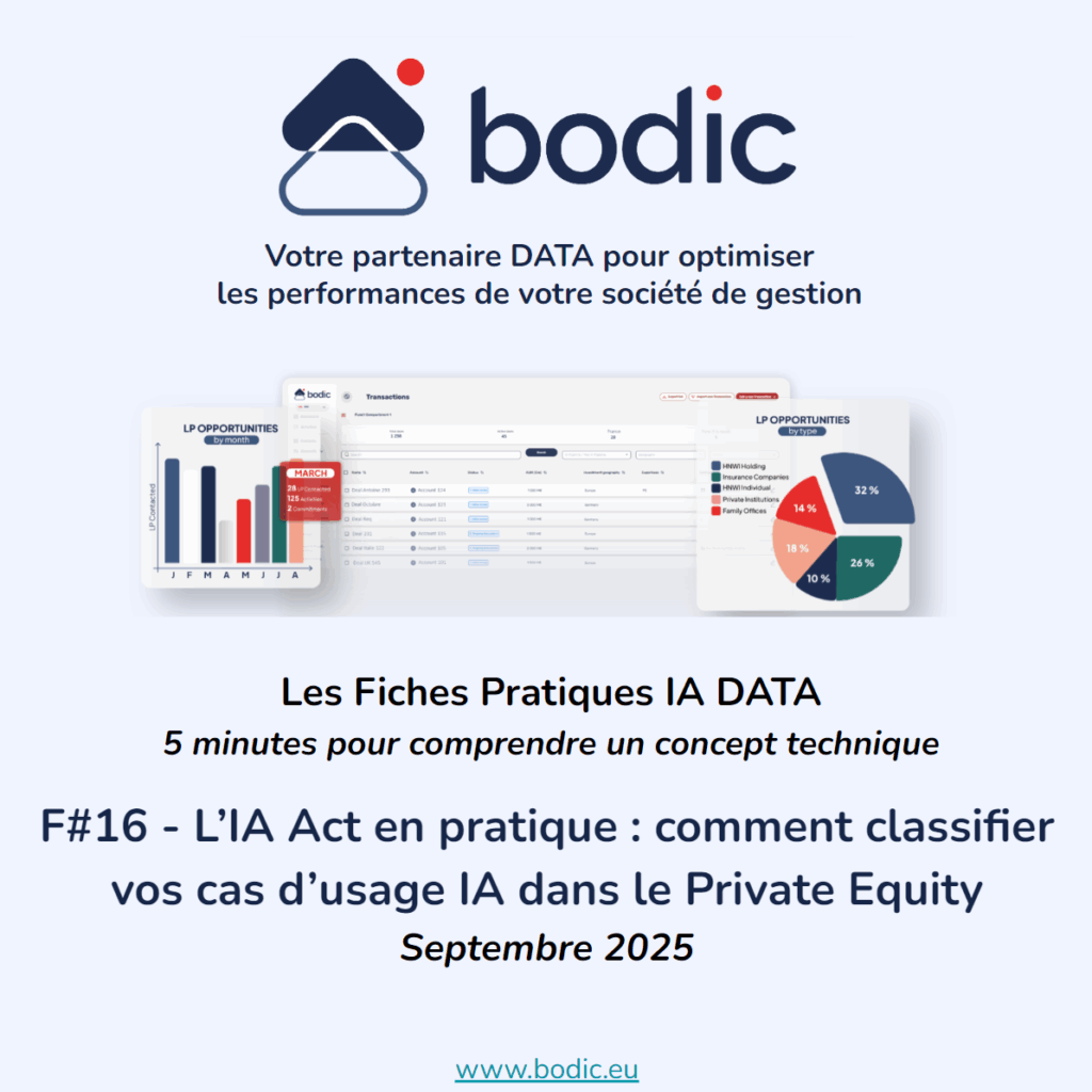 Cette fiche fournit un aperçu détaillé de l’IA Act et de son application pratique, particulièrement dans le secteur du Private Equity. Elle souligne les échéances clés de la législation, notamment l’interdiction de certaines pratiques d’IA dès février 2025 et l’application progressive des obligations pour les modèles d’IA à usage général. Le texte présente une classification des systèmes d’IA en quatre catégories de risque (inacceptable, élevé, limité, minimal) et offre des conseils pratiques aux sociétés de gestion pour cartographier et gérer leurs cas d’usage de l’IA. Elle explique également les impacts concrets de l’IA Act sur les opérations internes, les due diligences, les relations avec les investisseurs, et la gouvernance, en insistant sur les risques d’extraterritorialité et de réputation. Enfin, la fiche positionne la conformité non seulement comme une obligation, mais aussi comme un avantage compétitif crucial pour renforcer la confiance et éviter de lourdes sanctions.