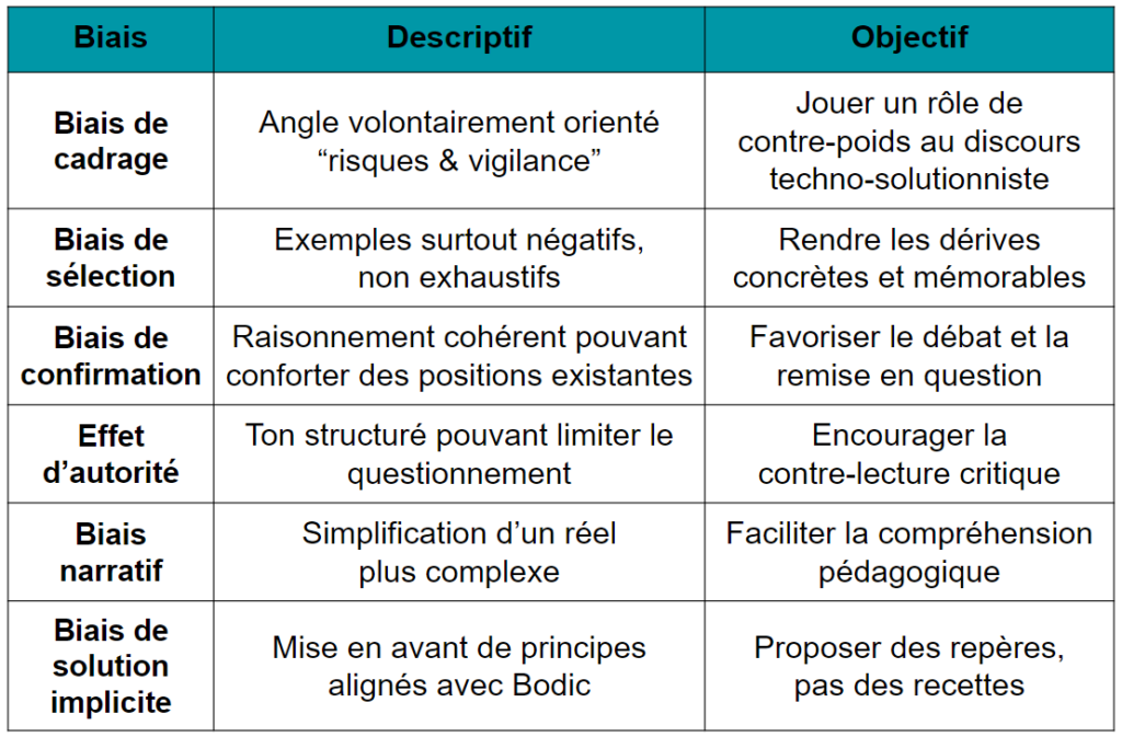 *** Bonus *** Quels sont les biais de cette fiche ?